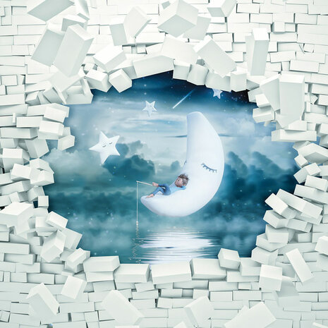 Het 3D Muur fotobehang met het Mannetje op de maan is stoer en lief tegelijk. Bovendien geeft dit behang een leuk diepte-effect aan de kamer.