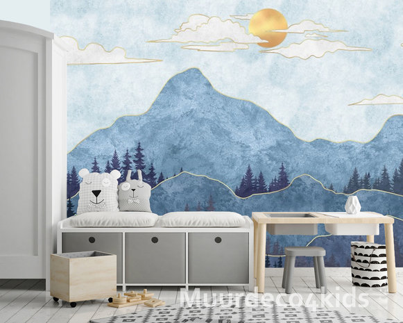 Dit Blauwe bergen met bomen behang geeft kleur aan de kamer. Het fotobehang is leverbaar in diverse standaard maten en kan ook in spiegelbeeld (gratis service) en/of op maat gemaakt worden. Mail gerust voor meer info.