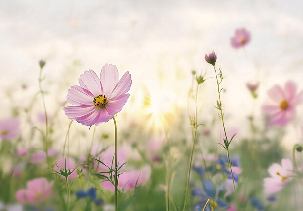 Geef de kamer een persoonlijke stijl met dit Bloemen fotobehang Cosmea, geschikt voor klein en groot!
