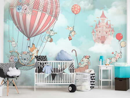 Dit leuke Dieren in luchtballon behang is leverbaar in diverse standaard afmetingen fotobehang.
