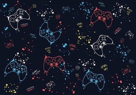 Met dit gave Game behang Controllers - Level Up geef je makkelijk een snel een game-accent aan de kamer.
