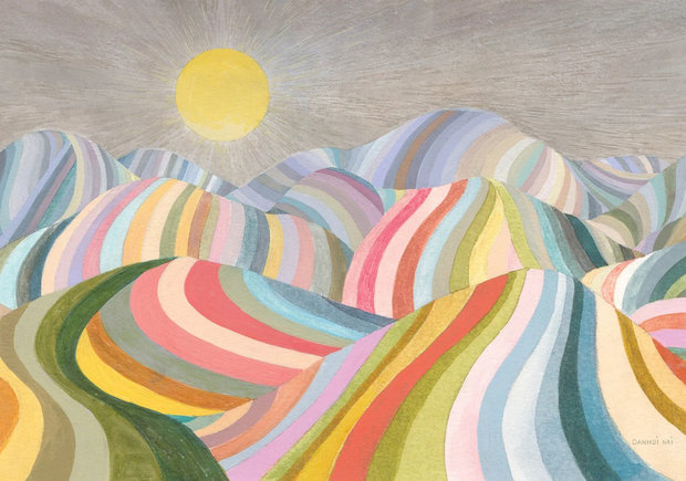 Dit Gekleurde bergen behang Rainbow Hills laat altijd de zon in je kamer schijnen.