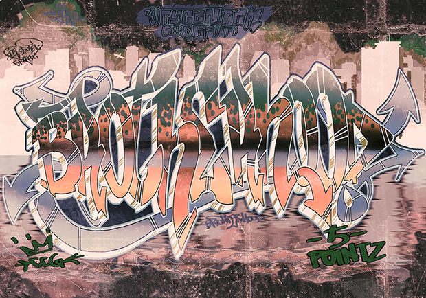 Dit Graffiti behang Brotherhood is leverbaar in 4 maten en 3 kleuren.