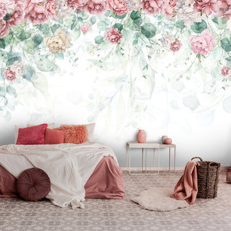 Dit Hangende bladeren met pioenrozen behang geeft een romantische sfeer aan de kamer. Leverbaar in standaard maten en ook op maat mogelijk, mail gerust voor meer info.