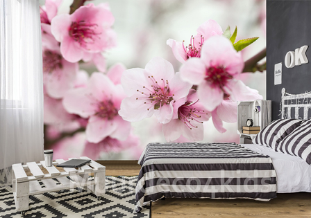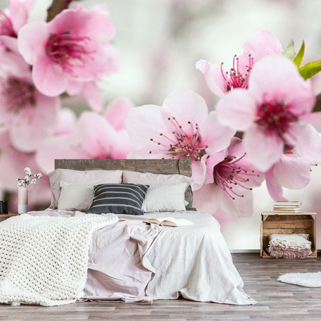 Met dit Kersenbloesem fotobehang maak je echt een sfeervolle kamer.