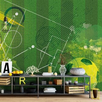 Heb jij een grote of kleine voetbalfan in huis? Dan is dit Voetbal behang Tactiek een voltreffer, het heeft mooie kleuren en zal zeker niet snel vervelen.